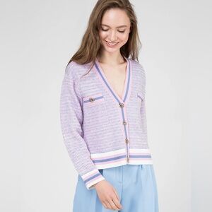 Sandro Lyna Bleu/Rose Lavender Cardigan Sweater NWT Sz 1