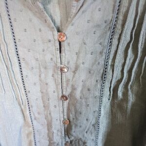 Cotton dobby combination fabric at neckline ruffle and sleeve finish