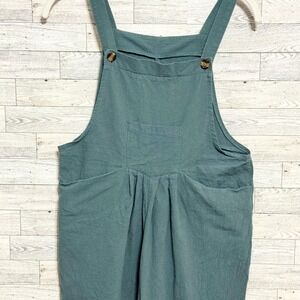 Womens Solid Color Wide Leg Jumpsuit Overalls Lt. Green Size Small Linen/Cotton