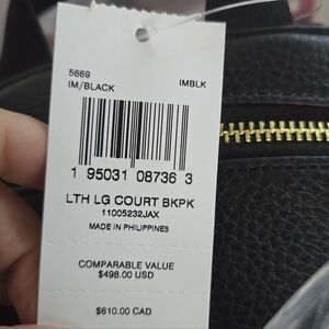 NWT Coach Black Leather Court Backpack In Large