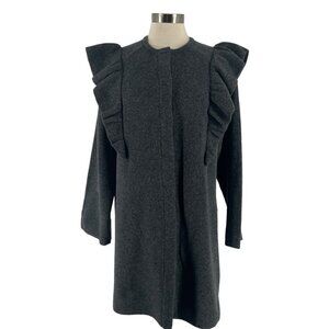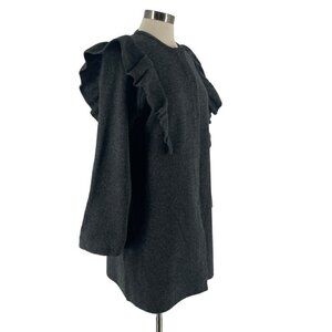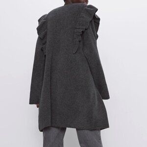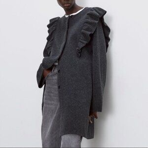 NWOT Zara Ruffle Shoulder Snap Front Cosy Sweater Coat Grey Women's Small