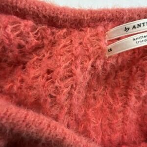 Keywords: Anthropologie, sweater, ruffled collar, knit, coral red, textured, top, pullover, cute, boho, chic, comfortable, stylish