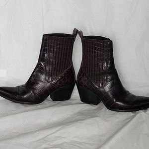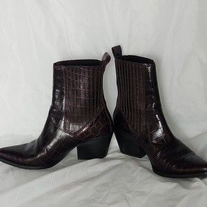 ZARA WOMAN Animal crocodile Print Cowboy Style Boots (Booties) burgundy SZ 36.