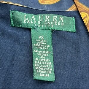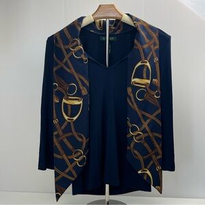 Lauren Ralph Lauren Equestrian Bridle Scarf Print Navy Blue Gold Top Petite Small