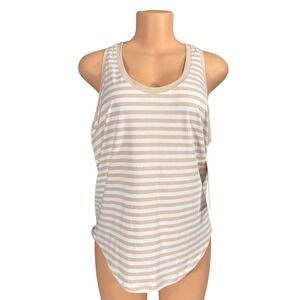 Lululemon Love Tank Top Tan White Striped Pima Cotton Racerback LW1EUMS Size 10