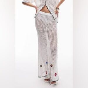 Topshop Crochet Maxi Skirt Elegant Colorful Crochet Flowers NWOT Size 8 - 10