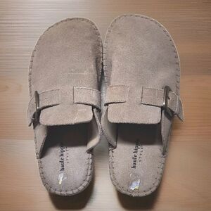 Haute Hippie Aria Suede Mule Clogs Tan Beige Buckle Slip-On 9M NWOT