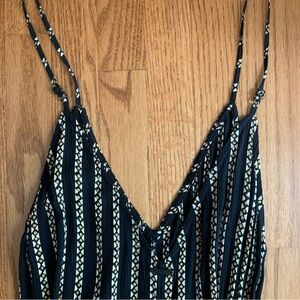 Billabong Black and White Striped V-Neck Cropped Wide-leg Jumpsuit