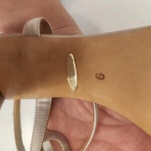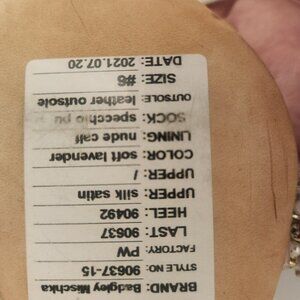 Badgley Mischka Light Lilac Embellished Heeled Sandals. NWT. Size 6. NWT, not in original box, the only tags are the stickers on the bottoms. Assuming tried on, the stickers state sample. No rips/tears. Small, discolored area/dirt marking on the back heel and a slight lift of the base, may need a bit of glue. See final picture. Adjustable buckles for fit. Heel height: 3.8 inches. The embellishments are intact, almost looks like satin petals coming out of the gems/pearls. Smoke free home. No odors. All offers are welcome. Thank you!