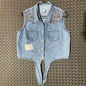 L.A. Blue Western Embroidered Floral Denim Button Up Blue Vest Women's Size L