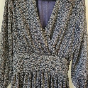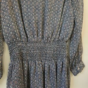 Chic Zara dress with intricate pattern. Long sleeves and flattering waist detail. Ideal for versatile styling.
