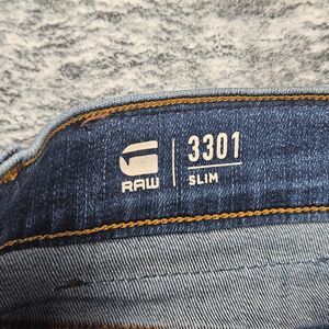G Star Raw Jeans Mens 31x30 Blue Denim Slim Button Fly Light Wash Stretch 3301