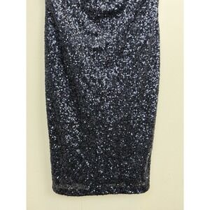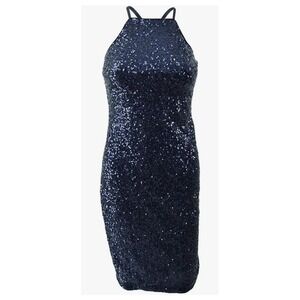Vintage Y2K Women's Sequin Halter Dress Size M/8 Navy Blue Midi Under The Knee