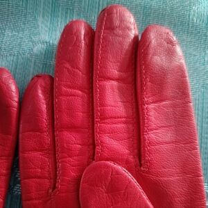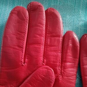 Chic scarlet leather gloves. Add flair to any outfit. Soft and timeless. Great for spring time🍀
