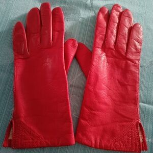 S❤️Vintage Scarlet Vibrant Red Leather Gloves Lined