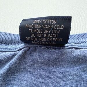 Vintage-inspired surf tee from Yesterdays features a faded blue wash and a Poipu Beach Kauai graphic on both the chest and back. Crafted from 100% cotton in the USA, this short-sleeve crewneck offers a relaxed fit with a classic surfboard and hibiscus floral motif. The garment-dyed appearance gives it a soft, lived-in feel perfect for casual coastal wear.