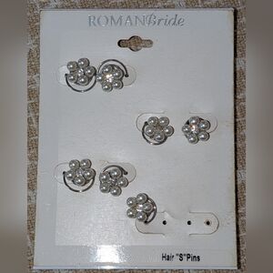 Set of seven elegant silver hair jewelry with faux pearl accents. Perfect for your special day. This is a stunning set, unfortunately it came with only seven of the pieces.