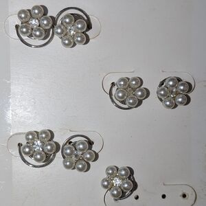Darling Silver Faux Pearl Earrings Set