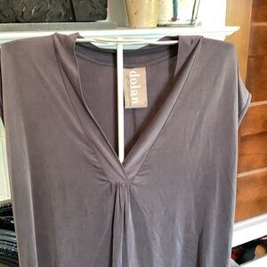 Elegant gray dress by Dolan. Features a V-neck and short sleeves. Perfect for casual or formal occasions.