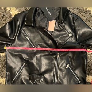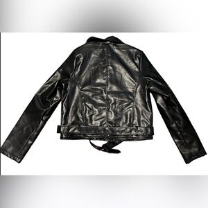 NWT PrettyLittleThing Black Faux Leather Belted Biker Jacket