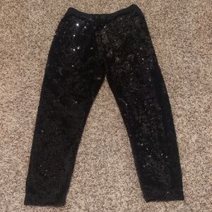 Joan Vass black sparkly sequin high rise tapered leg pant