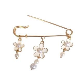 Gold Floral Pearl Brooch - NWOT