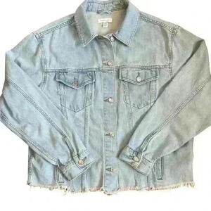 TOPSHOP light blue faded Unfinished bottom hem JEAN JACKET never worn 14