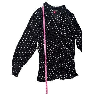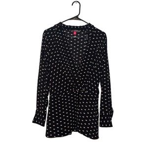 Vince Camuto Women's Long Sleeve V-Neck Top Blouse Black and White Size PL