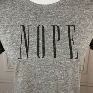 Modern luxe brand size medium gray T-shirt with nope on the front some pilling good preowned condition. please see pictured