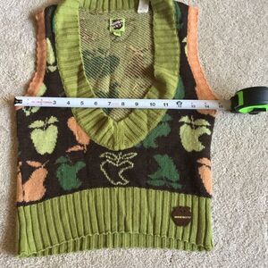 VERY RARE vintage Miss Sixty Wool Apple Design Green Sweater Vest