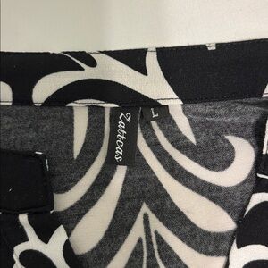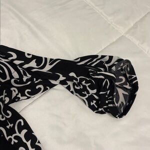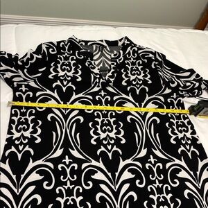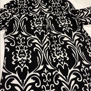 This stylish women's tunic top features an elegant black and white pattern, perfect for any occasion. The comfortable fit and chic design make it a versatile addition to your wardrobe. Polyester mix fabric for soft fall and flow. No stains or tears or holes.