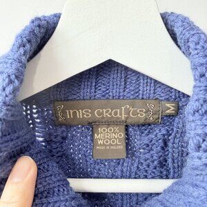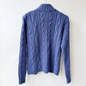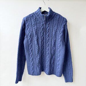 Inis Crafts Blue Fisherman Cable Knit Zip Cardigan Sweater Size M D52