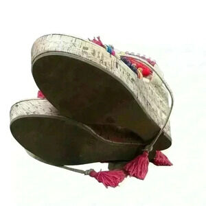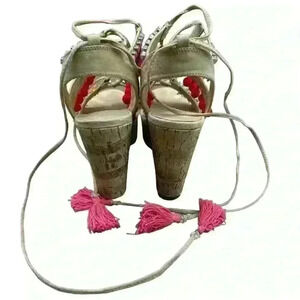 Charlotte Russe embellished Pom Pom WEDGE HEEL LACE UP SANDAL 8