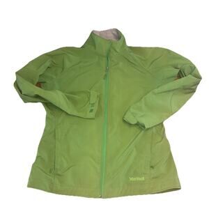 The Marmot Women’s Green Large Full Zip Jacket is a versatile and functional piece perfect for outdoor activities in winter, fall, and spring. Made of durable nylon outer shell material with a softshell fabric type, this jacket features a full zip closure, zipped pockets, and a water-resistant and wind-resistant design. It also has a slimming fit, collared neckline, and a mid-length style, ideal for travel, activewear, casual, and workwear occasions. The green color with the Marmot logo adds a stylish touch to this practical and breathable jacket perfect for hiking and other outdoor adventures.