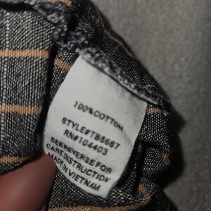 No flaws to note. Linen style 100% Cotton. Belt tie is removable!