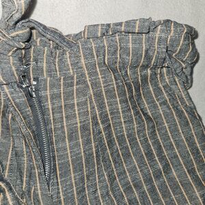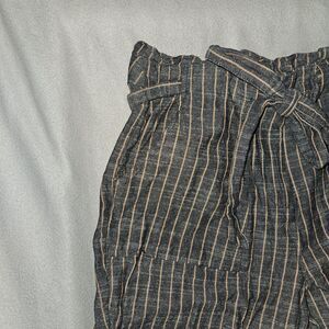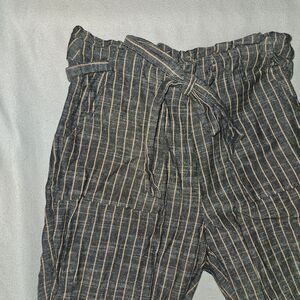 MINE Women’s S Striped High Waist Paper Bag Pants Gray Orange Ankle Office Boho