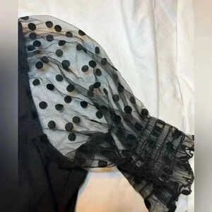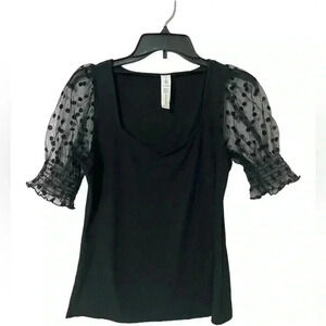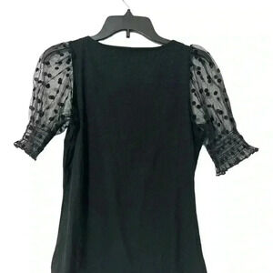 Verdusa Women's Sheer Dobby Mesh Puff Sleeve Square Neck Top