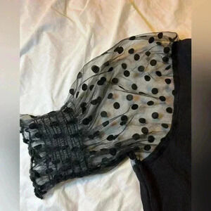 • Square neckline, short sleeve, polka dot print, contrast mesh