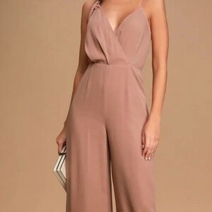 Lulus Mauve Tie Strap Wide Leg Jumpsuit Size Small