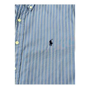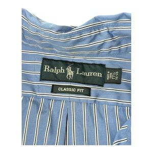 Ralph Lauren Button Down Shirt Blue Stripe Long Sleeve Classic Men’s Size 17 1/2 32/33. Item in good pre-owned condition.