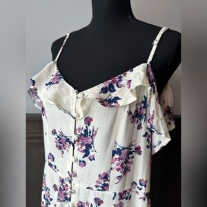 Xhilaration White and Purple Floral boho Cottagecore Maxi Dress NWT XL