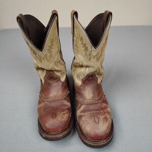 JUSTIN Superintendent Cowboy Work Boot Mens 10.5 Tooled Leather 11" Steel Toe