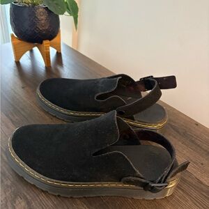 Classic black suede mules .Durable and stylish. Perfect for versatile wear.