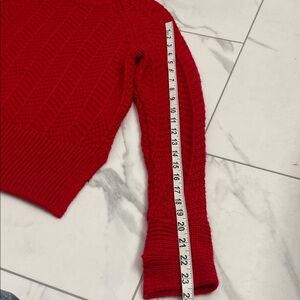 Stay cozy and stylish with this vibrant red cable knit sweater. Perfect for any occasion.
