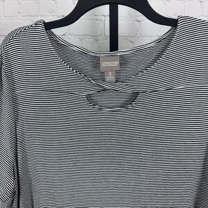 Chico’s top size 3 (XL). Black and white striped top with twisted neck detail. Short sleeves. Great condition. Smoke free home.