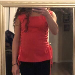 Design Aragon brand coral lace up blouse