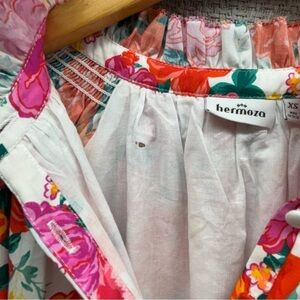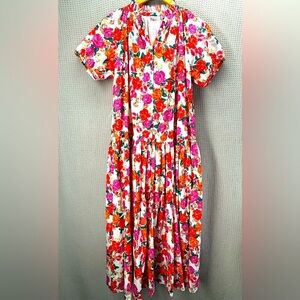 Hermoza Women’s Pia Midi Pink Floral Dress Sz XS-Colorful Summer Tiered Romantic. Very small stain on inside. Cannot see when wearing. Please see pictures. Otherwise in amazing condition.