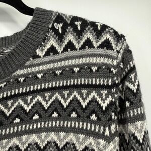 Talbots Cardigan Sweater Womens XL Gray Fair Isle Lambswool Beaded Knit