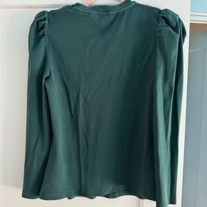 Like new! veronica beard dark green puff sleeve ribbed long sleeve top size small