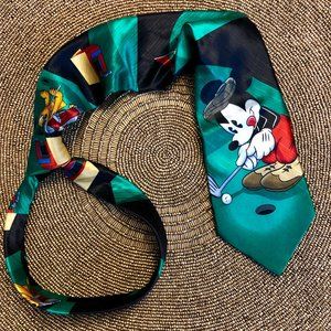 Vintage Green Mickey Mouse Golfing Neck Tie